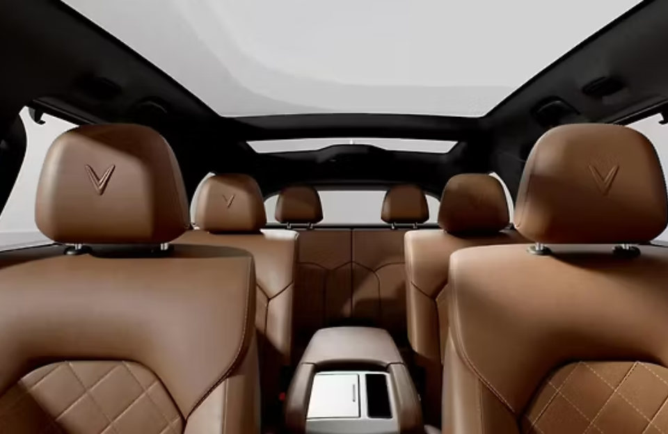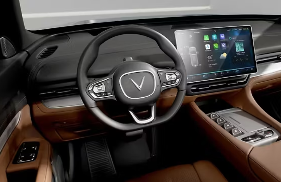 Inside, the VF 9 feels as premium as it looks. The cabin is finished with vegan leather upholstery and packs a long list of comfort features, including: